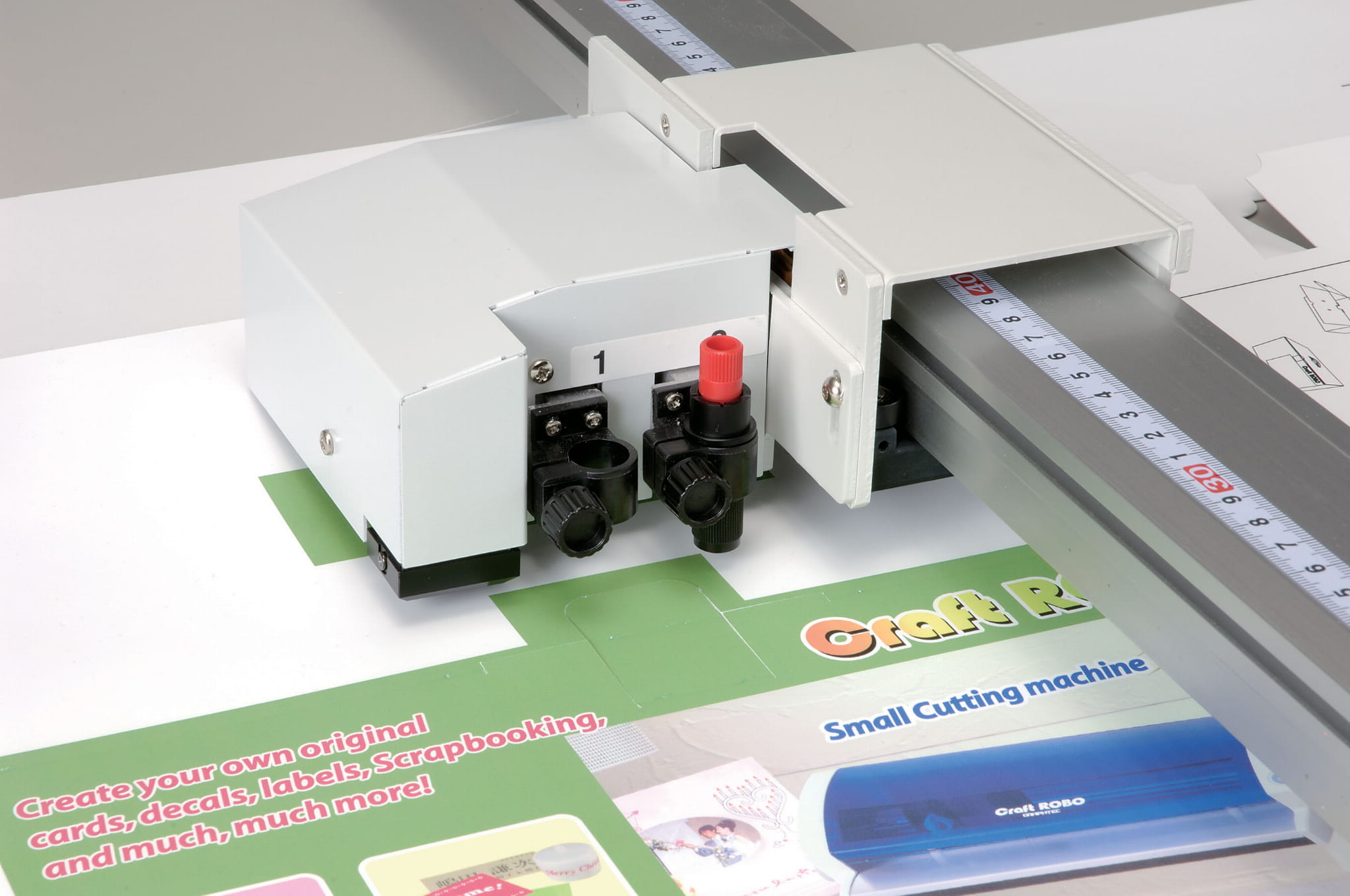 - Czteropunktowy system odczytu znaczników umożliwiający precyzyjne wycinanie po obrysie